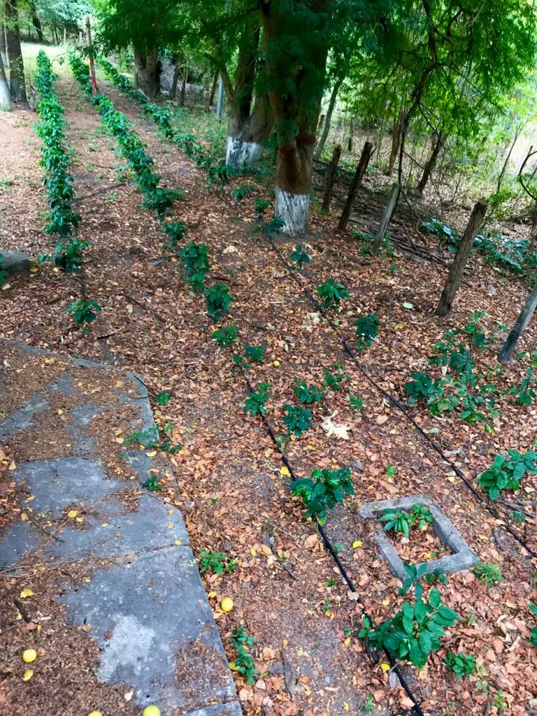 El cultivo se estableció bajo el dosel de un estrato arbóreo diversificado, compuesto por especies frutales y madereras como tamarindos, aguacates y acacias, los cuales cumplen funciones ecológicas clave: regulación microclimática, aporte de materia orgánica mediante hojarasca, fijación biológica de nitrógeno y promoción de biodiversidad funcional. Este diseño imita la estructura de los bosques naturales, potenciando los servicios ecosistémicos y reduciendo la dependencia de insumos externos.